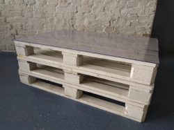 Pallet-pöytä eli kuormalavapöytä, kuvassa 3 kuormalavaa, hinta ilman akryylilevyä