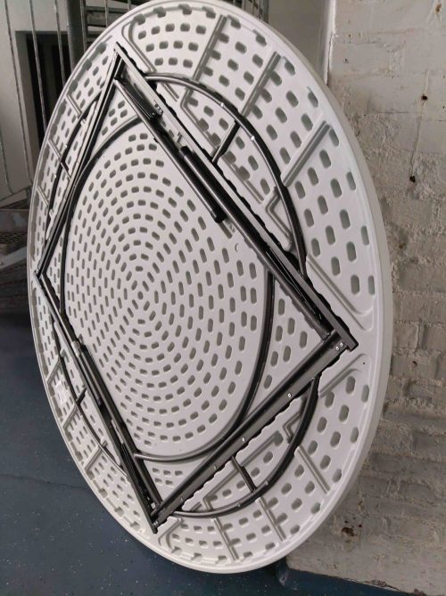 pöytään on vuokrattavissa valkoinen pyöreä pöytäliina Ø 260 cm